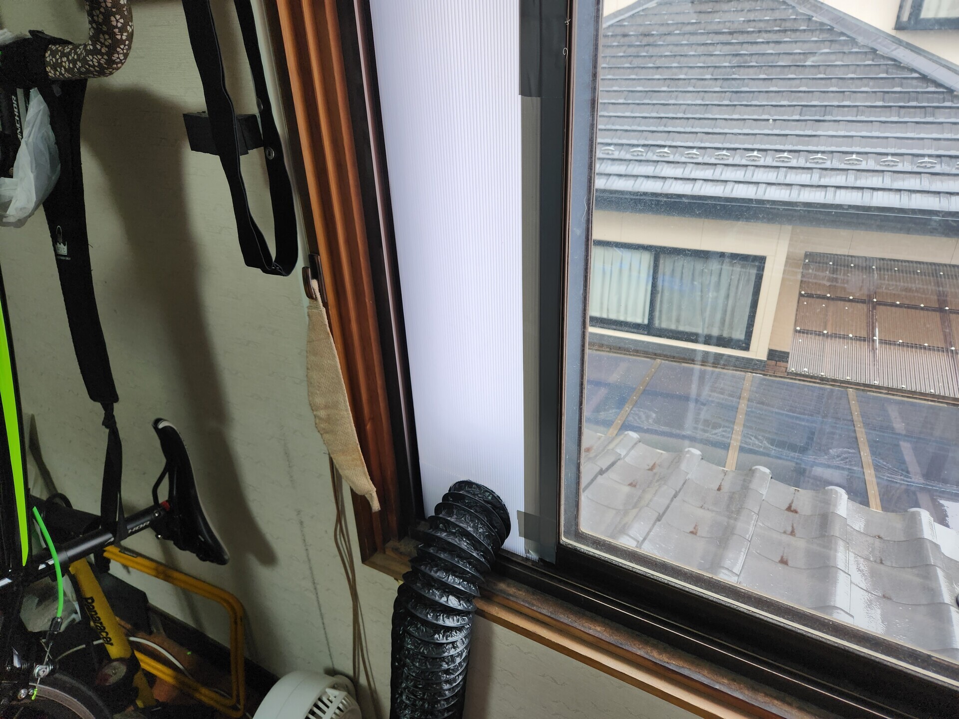 今回は、窓にはさみこむようにダクトを設置して、いつでも排気できるようにします。