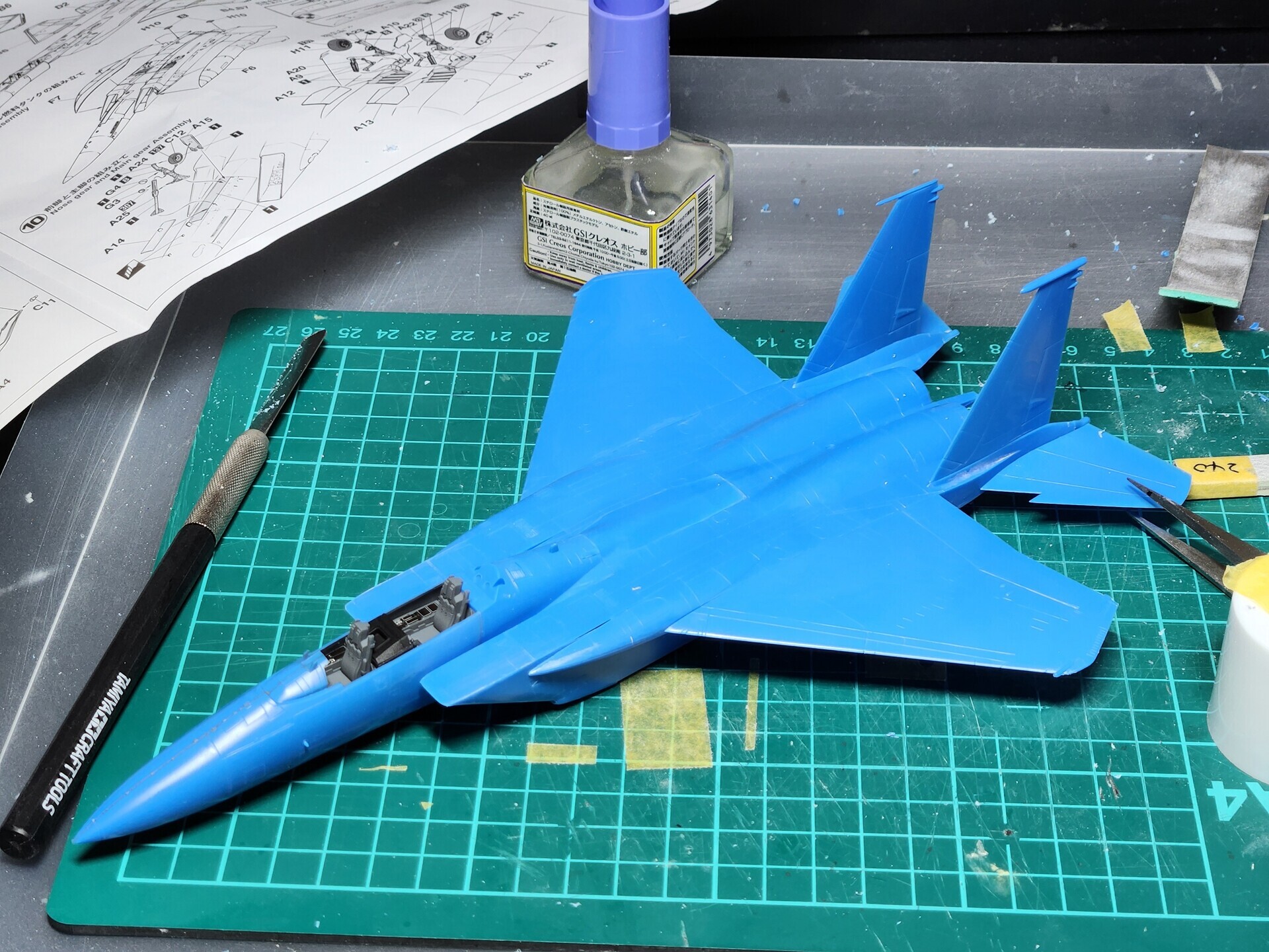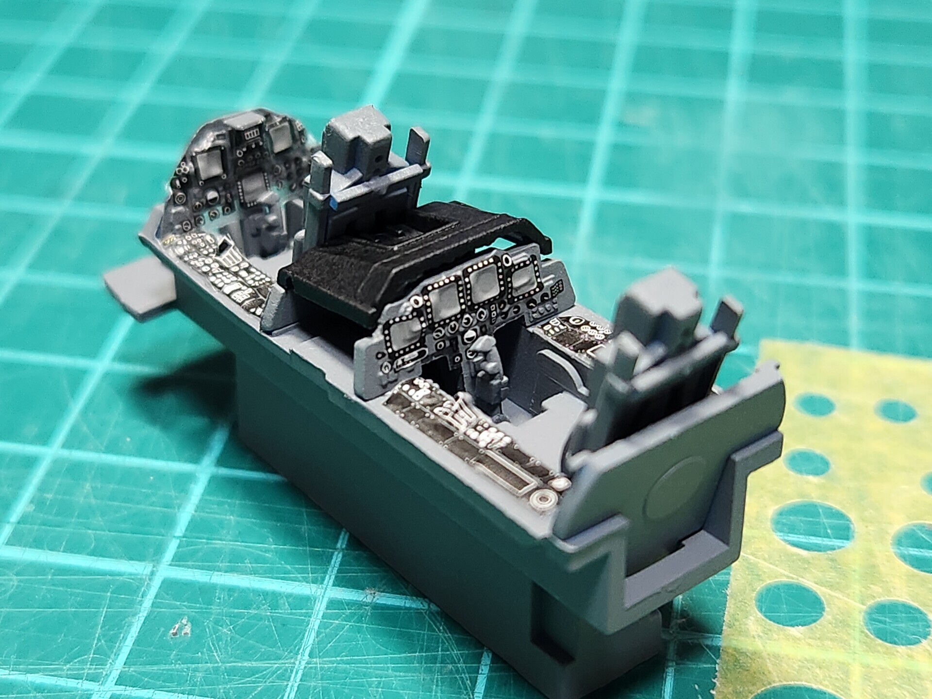 飛行機プラモはまずコクピットを完全に仕上げてから機体の製作に入るのが一般的なようです。