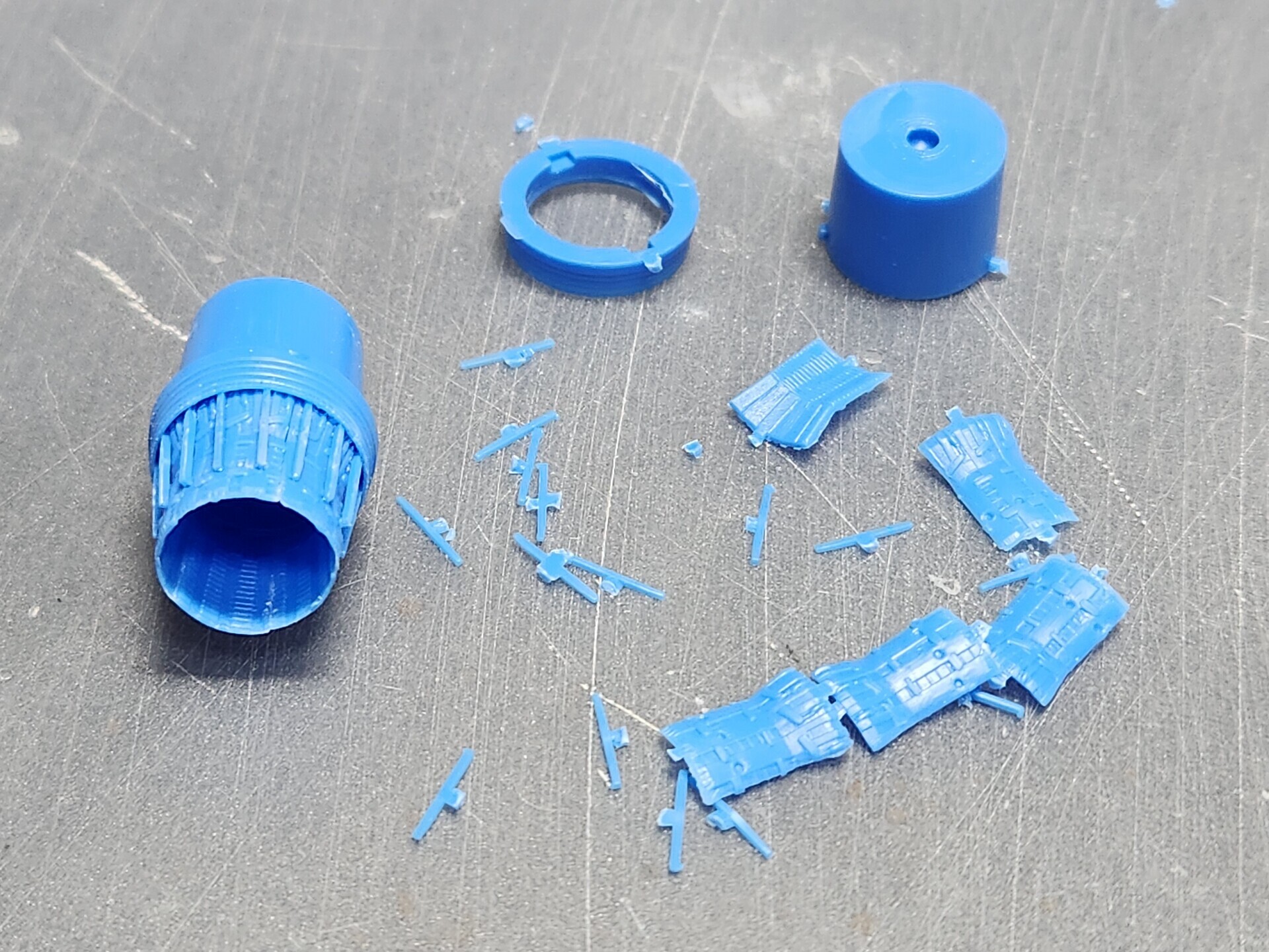 成型色が青なので、全部グレーに塗らないといけないのが大変です。
