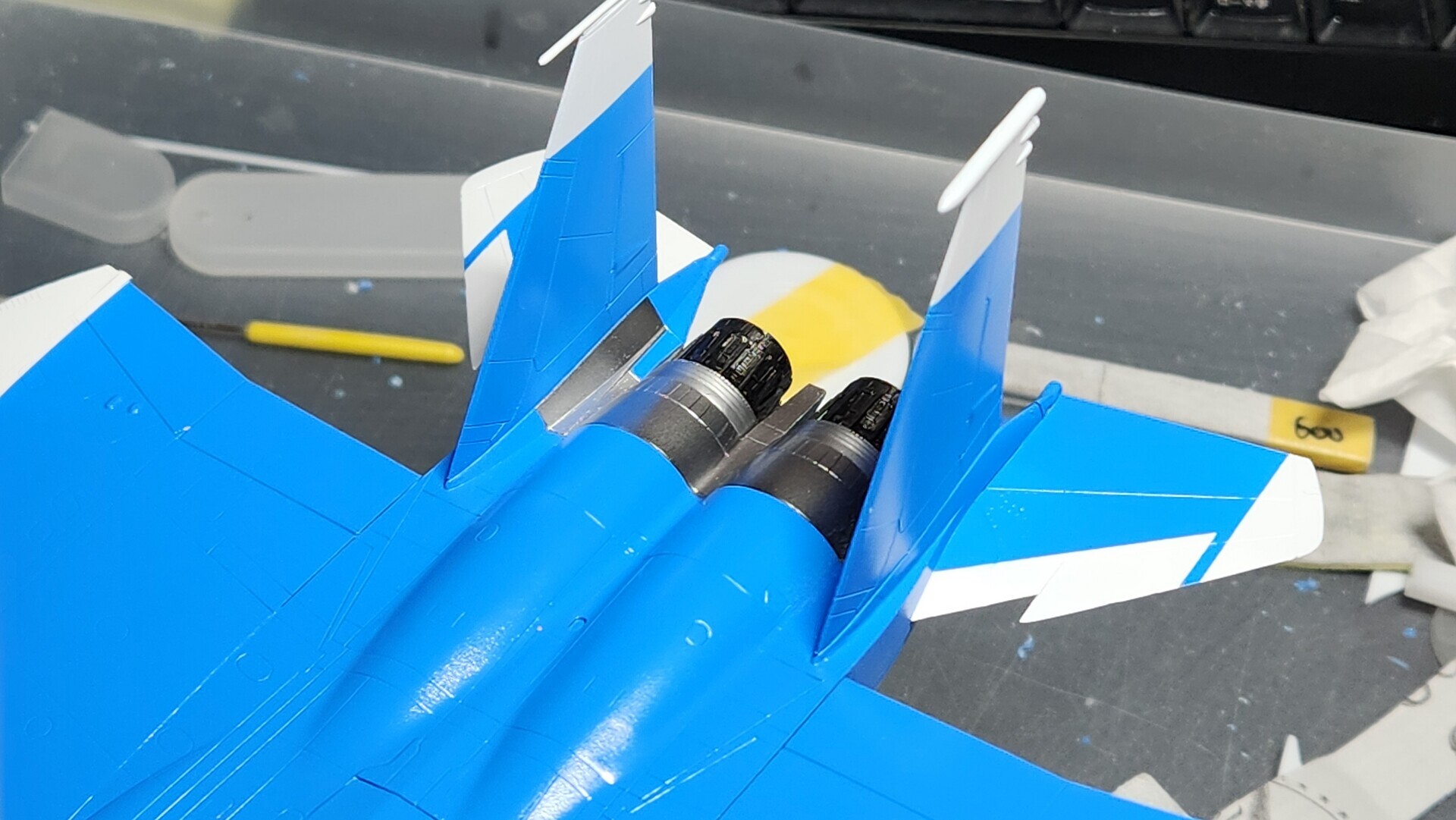 垂直尾翼と水平尾翼を接着してしまったので、ちょっとめんどう。