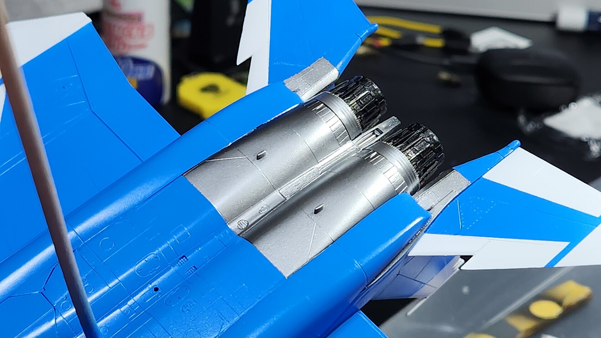 実際、先に接着してしまったので垂直尾翼の間は非常に塗りにくかったです。